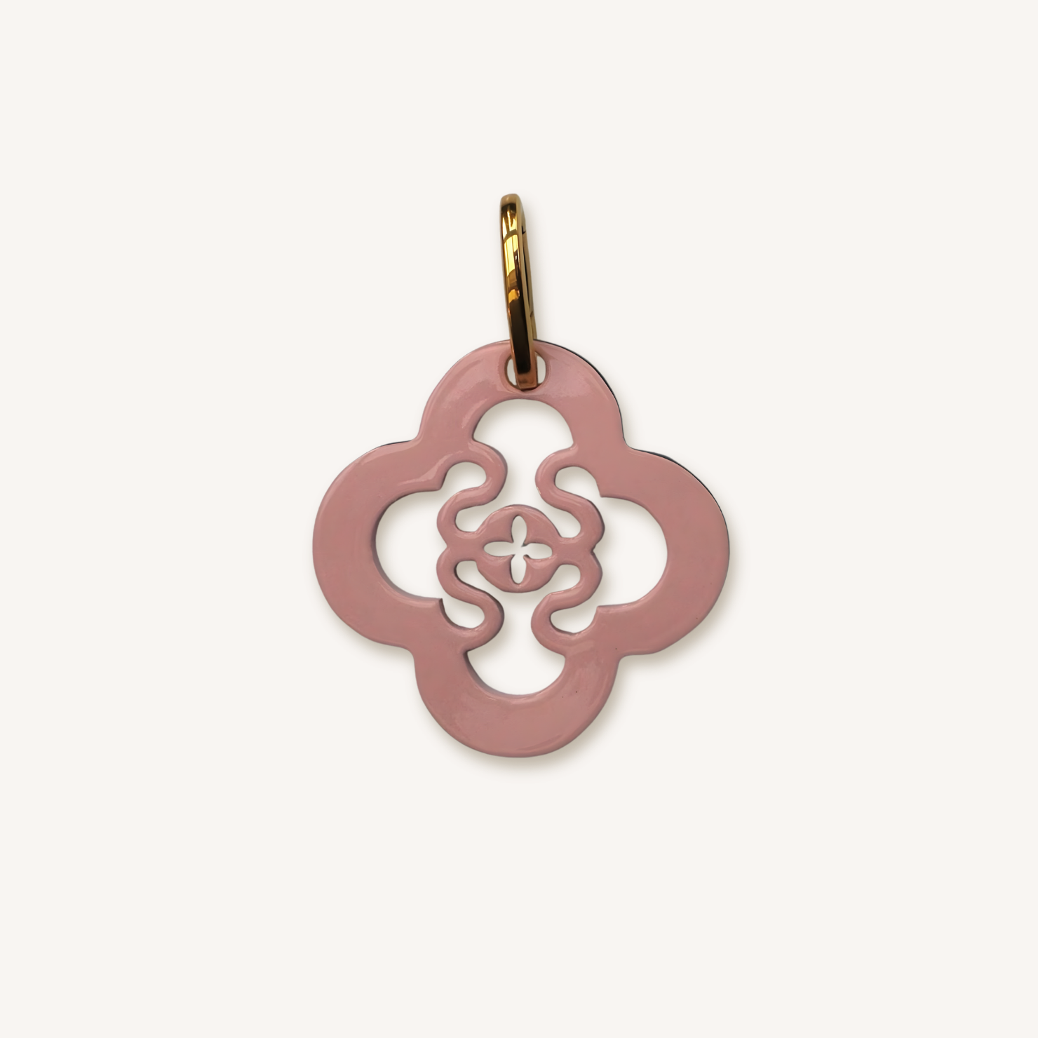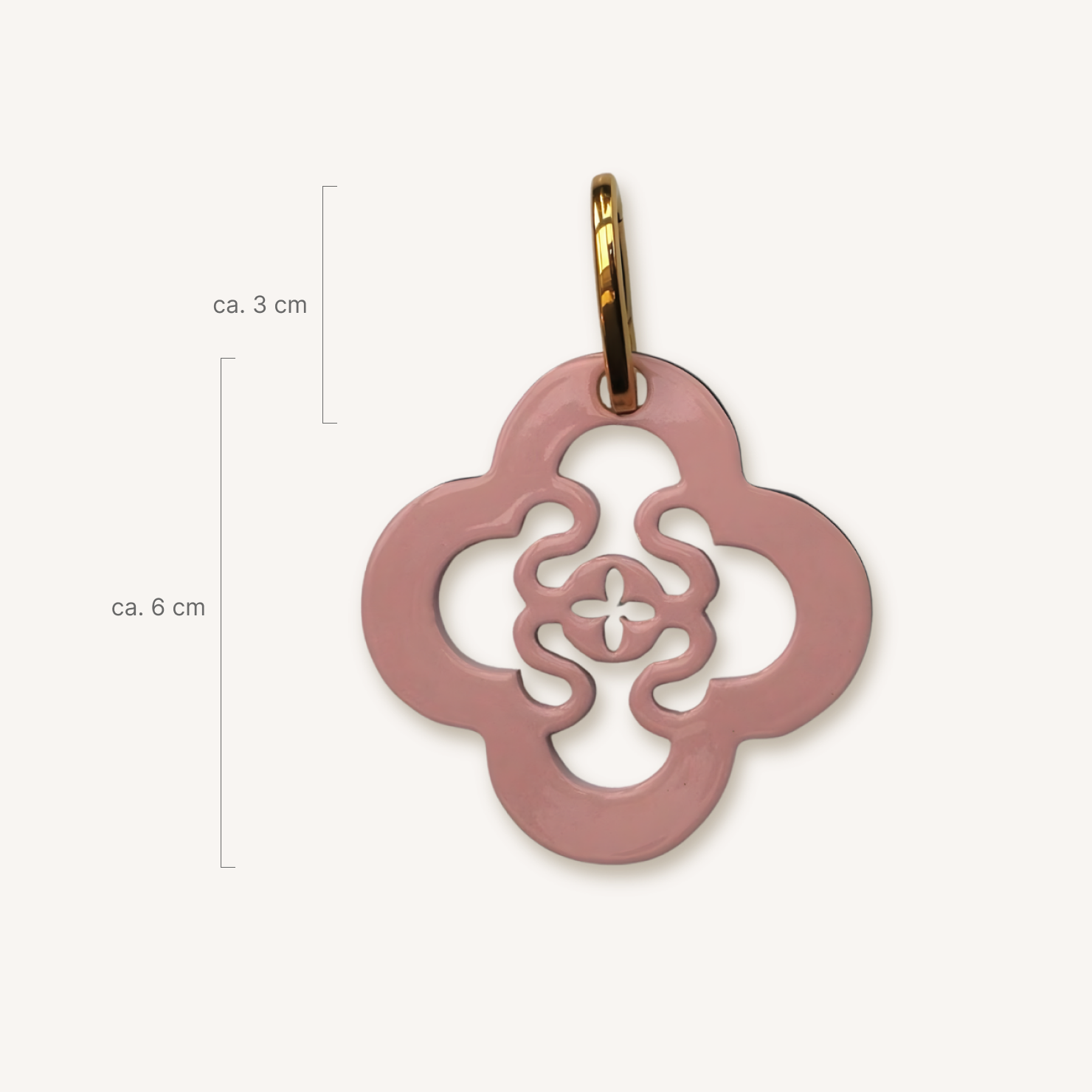59,00 €Stilvoller Anhänger aus Horn mit einem vergoldeten Karabiner in graphischer Blütenform. Gefertigt aus Horn mit lackierter Oberfläche in warmen pudrigen Rosaton und beidseitig tragbar. Die Rückseite ist in Naturhorn Braun-Grau. Leicht, auffällig und ideal für Kette oder Tasche – ein elegantes Accessoire mit besonderem Design.
